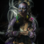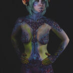 Reagan face paints and body paints in Denver. She’s also a skilled freelance digital artist, animator, and 3D designer running the Carbon Creatures agency with Dan and working at an international creative agency. In addition to painting you like you’ve never looked before, she can design you into your flyer or commercial artwork too! She’s available for live painting, live events, and body painting sessions that may also include Dan as a photographer (or use your own!).